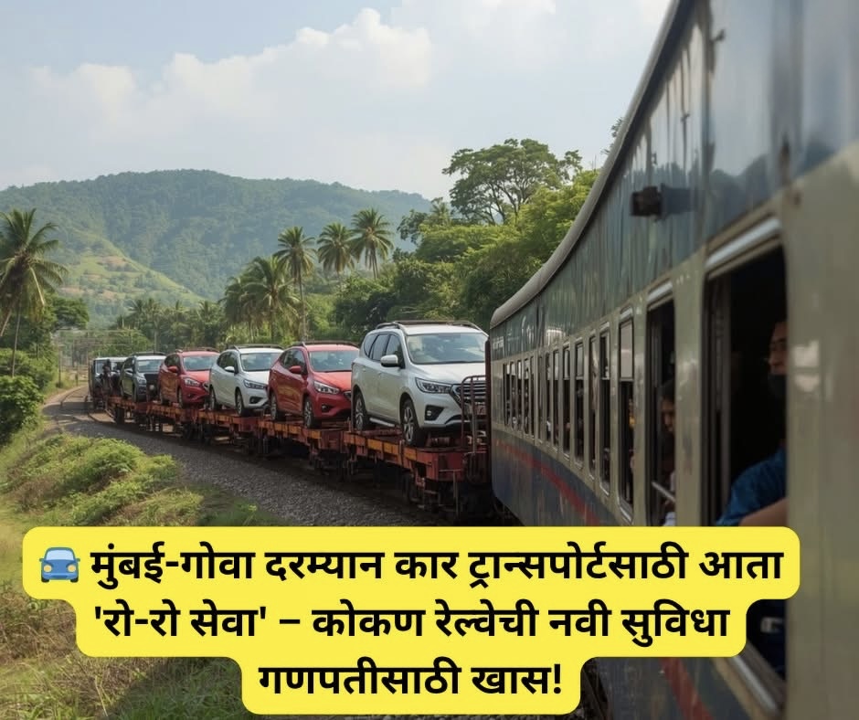 गणेशोत्सवाच्या पार्श्वभूमीवर कोकणात जाणाऱ्या भाविकांसाठी एक दिलासाद बातमी! कोकण रेल्वे महामंडळाने (Konkan Railway Corporation Limited) कोलाड (महाराष्ट्र) ते वेरणा (गोवा) दरम्यान खासगी कार्सच्या वाहतुकीसाठी ‘Ro-RO’ (Roll-on Roll-off) सेवा सुरू करण्याचा निर्णय घेतला आहे.
