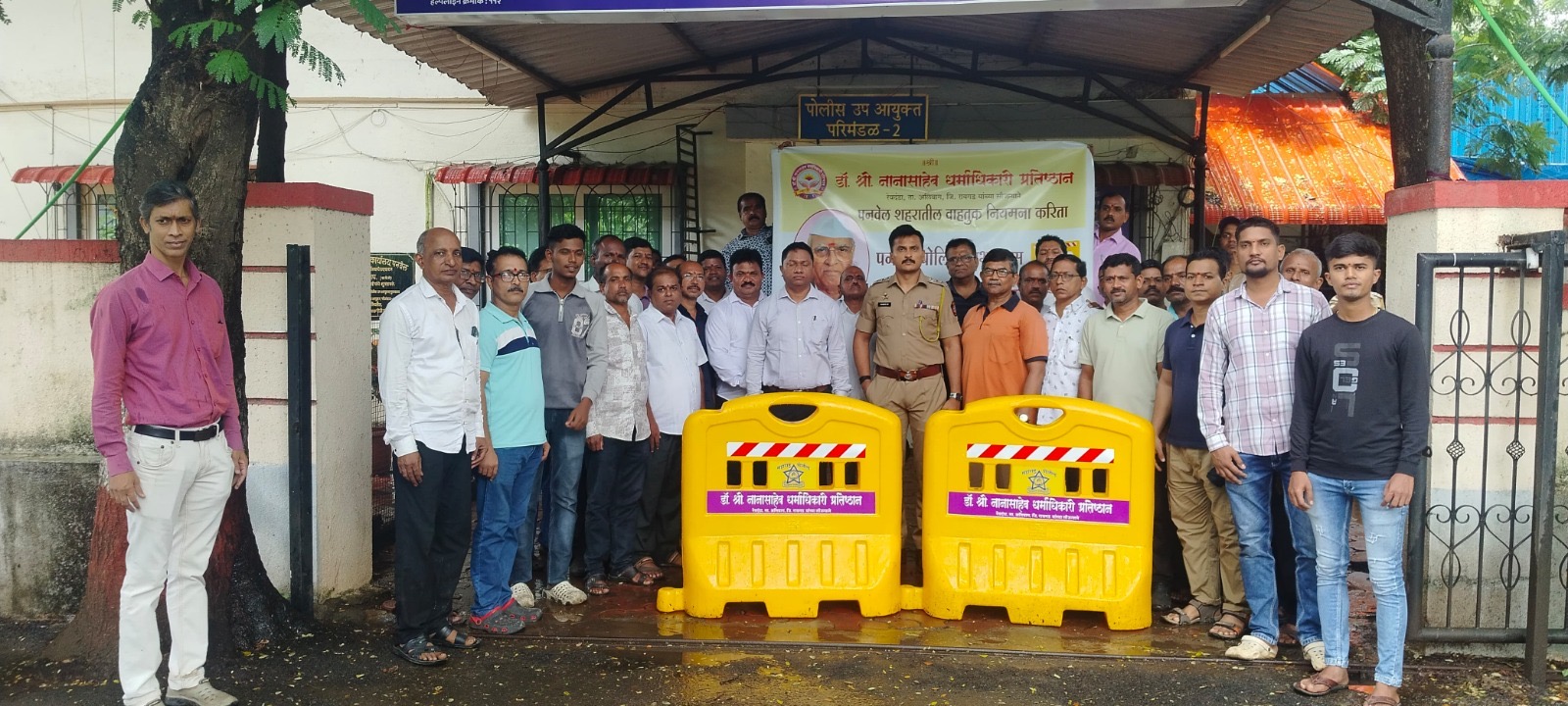 दरवर्षी विविध सामाजिक उपक्रम राबवणाऱ्या डॉक्टर नानासाहेब धर्माधिकारी प्रतिष्ठानने पनवेल पोलिसांना १०० बॅरिकेट्स दिले. उपयुक्त कार्यालयात झालेल्या या कार्यक्रमाला परीमंडळ ३ चे सहाय्यक पोलीस आयुक्त भाऊसाहेब ढोले यांच्यासह प्रतिष्ठानचे सदस्य मोठ्या संख्येने उपस्थित होते. यावेळी भाऊसाहेब ढोले यांनी प्रतिष्ठानचे आभार मानले. तसेच या बॅरिकेट्समुळे पनवेल शहरातील वाहतूक कोंडी नियंत्रणात आणण्यासाठी मोठी मदत होईल. शहरातील वाहतूक सुरळीत ठेवण्यासाठी पोलीस नेहमीच प्रयत्नशील असतात आणि अशा प्रकारच्या सामाजिक उपक्रमातून मिळणारी मदत पोलिसांचे काम अधिक सोपे करते असे सांगितले.