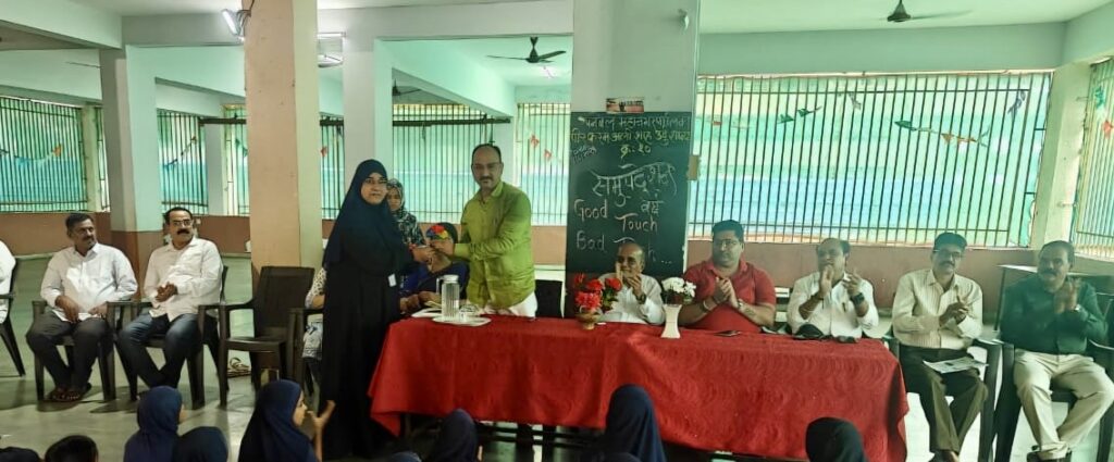 पनवेल तालुका पत्रकार विकास मंचाच्या वतीने सोमवार दिनांक ४ ऑगस्ट रोजी पनवेलच्या पीर करम अली शहा उर्दू प्राथमिक शाळेतील मुलींना “गुड टच – बॅड टच” या अत्यंत संवेदनशील विषयावरती समुपदेशन करण्यात आले. माजी नगरसेविका प्रीती जॉर्ज म्हात्रे आणि सायकॉलॉजिस्ट अनिशा कोल्हापुरे या दोन निष्णात वक्त्यांनी मुलींना मार्गदर्शन केले. पनवेल तालुका पत्रकार विकास मंचाचे अध्यक्ष मंदार दोंदे यांच्या जन्मदिनाच्या औचित्याने या सामाजिक उपक्रमाचे आयोजन करण्यात आले होते.