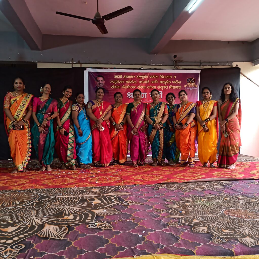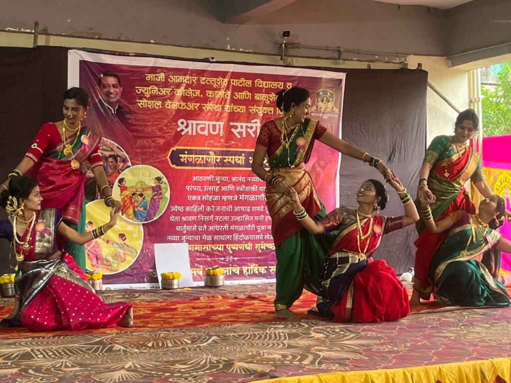मंगळागौर सांस्कृतिक परंपरा दृढ करण्यासाठी तसेच आपापसातील नातेसंबंध वृद्धीगत करण्यासाठी वार मंगळवार दिनांक १२/०८/२०२५, रोजी माजी आमदार दत्तूशेठ पाटील विद्यालय आणि जूनिअर कॉलेज आणि बाळूशेठ पाटील सोशल वेल्फेअर संस्था यांच्या संयुक्त विद्यमाने विद्यालयात माता पालकांसाठी मंगळागौर स्पर्धेचे आयोजन करण्यात आले होते. या अनोख्या उपक्रमामध्ये विद्यालयाच्या माता पालकांनी भरघोस प्रतिसाद देऊन स्पर्धेचा आनंद लुटला. सर्व माता पालकांनी उत्स्फूर्त पणे सहभाग घेऊन मंगळागौरीच्या नृत्याचे सादरीकरण केले. सर्व पालकांनी उत्स्फूर्तपणे प्रतिसाद दिला व प्रत्येक गटातील सदस्यांनी विविध संदेश दिला. तसेच प्रत्येक गटाचे नाव हे भिन्न व संदेश देणारे होते. पालकांच्या उदंड प्रतिसादामुळे कार्यक्रम यशस्वीरित्या पार पडला.