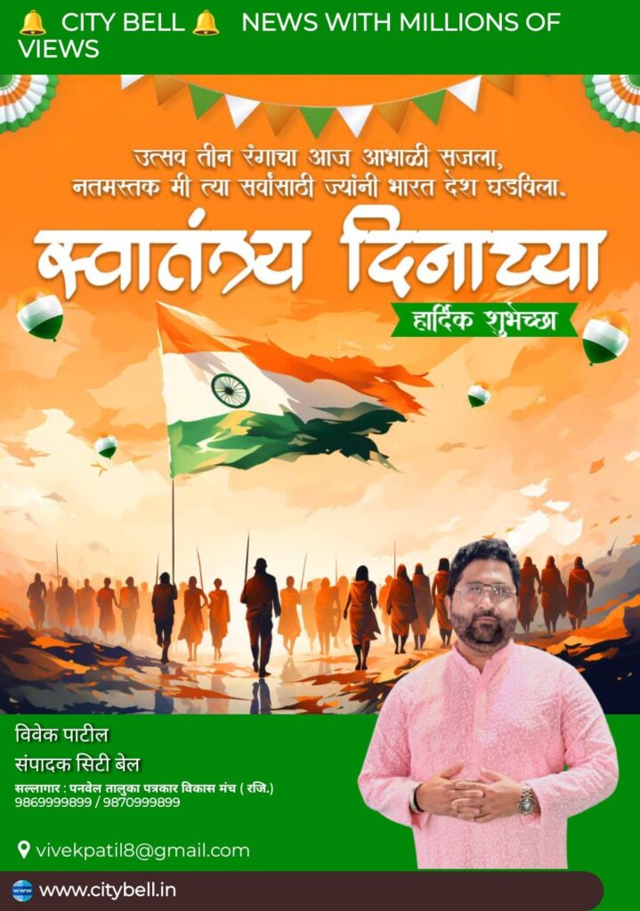 ७९ व्या स्वातंत्र्य दिनानिमित्त पनवेल तालुका व शहर भारतीय जनता पार्टीच्या वतीने ध्वजारोहण व ध्वजवंदन समारंभ मोठ्या उत्साहात साजरा झाला. त्या अनुषंगाने भाजपचे जिल्हाध्यक्ष अविनाश कोळी यांच्या हस्ते ध्वजारोहण झाले.