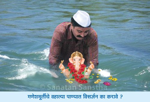 मूर्तीचे विसर्जन वहात्या पाण्यात करण्याचे महत्त्व : उत्तरपूजेनंतर मूर्तीचे वहात्या पाण्यात विसर्जन करावे. उपासनाविधींमुळे गणपतीच्या तत्त्वाने समृद्ध झालेल्या मूर्तीचे विसर्जन जलात केल्यामुळे जलस्रोत पवित्र बनतो. तसेच वहात्या पाण्याबरोबर ही पवित्रके सर्वदूर पोहोचतात व अनेकांना त्यांचा लाभ मिळतो. या पाण्याचे बाष्पीभवनही होत असल्याने एकंदर वातावरण सात्त्विक होण्यास मदत होते. एखाद्या ठिकाणी वहाते पाणी उपलब्ध नसल्यास मूर्तीचे विसर्जन विहिरीत करावे. गणेशमूर्तींच्या विसर्जनाने प्रदूषण होते, अशी ओरड करणार्यांनो, सांडपाण्याद्वारे होणार्या भीषण जलप्रदूषणाचा विचार करा ! श्री गणेशमूर्ती विसर्जनाला विरोध करणारे भोंदू सुधारक पशूवधगृहे आणि सांडपाणी यांमुळे होणार्या जलप्रदूषणाकडे डोळेझाक करतात. गणेशमूर्ती दान करण्यास सांगणार्या तथाकथित सुधारकांना घनकचरा, सांडपाणी, उद्योग, ई-कचरा यांमुळे होणार्या प्रदूषणाविषयी खडसवा !