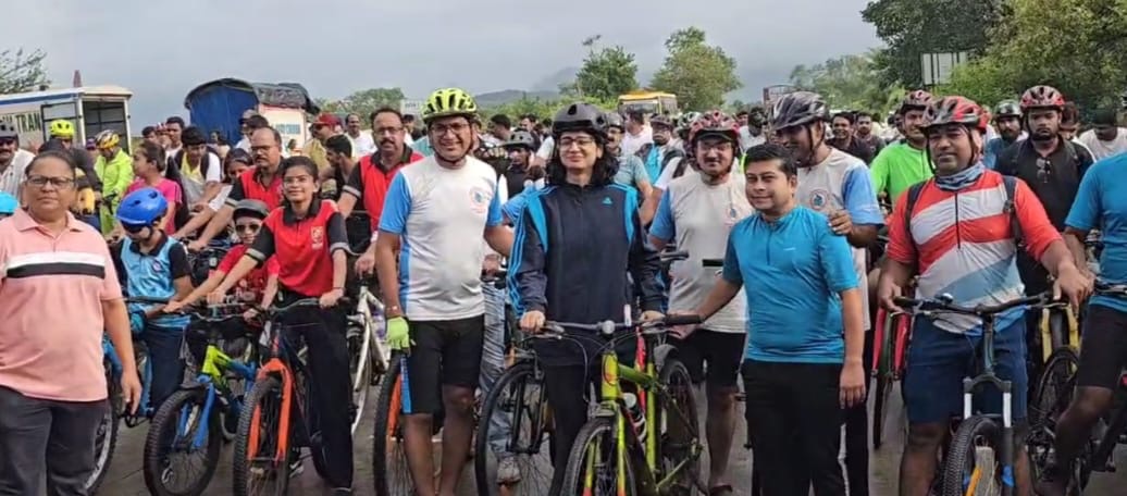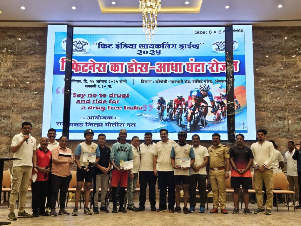 फिट इंडिया मोहिमेंतर्गत कर्जत खालापूर रस्त्यावर सायकलथॉनमध्ये शेकडो सायकलपटूंचा सहभाग