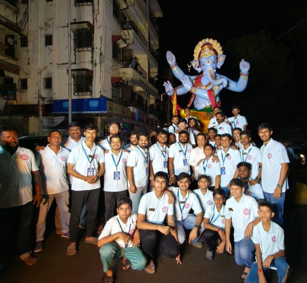 बाप्पासाठी हार-फुलं न आणता “एक वही – एक पेन” ही संकल्पना राबवली जाते. जमा झालेली शैक्षणिक साहित्य गरजू विद्यार्थ्यांना दिली जातात. दरवर्षी अनाथाश्रमांना भेट देऊन अन्नदान करण्याचा उपक्रमही राबवला जातो. प्रितमदादा म्हात्रे यांच्या मार्गदर्शनाखाली वृक्षारोपण, स्वच्छता मोहिम व इतर सामाजिक उपक्रम सातत्याने सुरू आहेत अशी माहिती मंडळाचे अध्यक्ष निखिल राम फडतरे यांनी दिली. या मंगलमय सोहळ्यात श्री.प्रितम म्हात्रे यांनी सपत्नीक सौ. ममता म्हात्रे यांच्यासह उपस्थित राहून बाप्पाचे दर्शन घेतले.