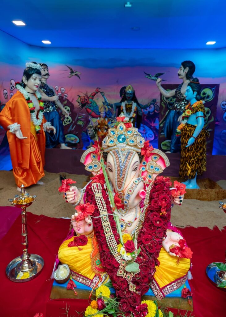 पनवेल दि. ३१ ( वार्ताहर ) : लोकमान्य टिळकांनी अभिप्रेत सार्वजनिक गणेश उत्सवाचा वारसा जपणारे पनवेल मधील गणेश उत्सवात सर्वात उच्च स्थानावर असलेले पनवेल मधील गेली ६४ वर्षे गणेश भक्तांना वेगवेगळया देखाव्याचे शोभित करणारे तुकाराम कोळी परिवार यांनी या वर्षी “रक्तबीज वध” या देखाव्यात रंगत आणलेली आहे.