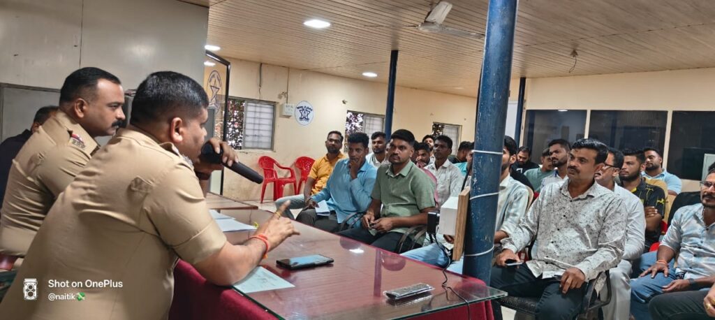 तर यावेळी पोलीस निरीक्षक संदीप बागुल यांनी सांगितले की साखरचौथीचे गणपती विसर्जनासठी मंडळातील सदस्यांनी लवकर काढावेत कोणताही अडथळा येणार नाही याची काळजी घ्यावी, विसर्जनाकरीता स्पिकर परवाना घ्यावा, डीजे, लेझर लाईट यांचा वापर करू नये यासह दहा वाजता स्पिकर बंद करण्यात यावे आपल्यासाठी पोलीस तत्पर आहेत.आपण गणेशोत्सव साजरा करत असताना तो आनंदाने साजरा करावा कायद्याचे कोणीही उल्लंघन करू नये अन्यथा कारवाईला सामोरे जावे लागेल.यावेळी उपस्थित मंडळातील सदस्यांनी स्पिकर परवान्यासाठी आपले कागदपत्रे पोलीस ठाण्यात दाखल केले.