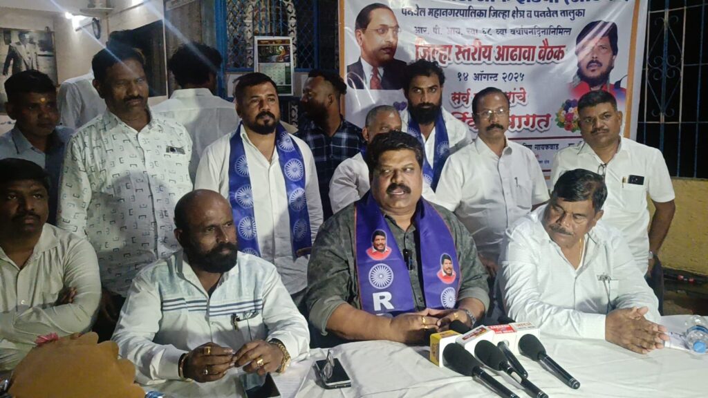 रिपब्लिकन पार्टी ऑफ इंडियाचा 68 वा वर्धापनदिन महाड येथील क्रांती भूमित 3 ऑक्टोबर 2025 रोजी संपन्न होणार आहे ,या वर्धापन दिनानिमित्त कार्यकर्त्यांना मार्गदर्शन, सूचना, जबाबदार्या या बाबत मार्गदर्शन करण्याकरिता पनवेल महानगर पालिका क्षेत्र अध्यक्ष प्रभाकर कांबळे तसेच पनवेल तालुका रिपाई च्या वतीने बैठकीचे आयोजन करण्यात आले होते, यावेळी कोकण प्रांत अध्यक्ष प्रकाश मोरे, मुंबई प्रांताध्यक्ष सिद्धार्थ कासारे,रायगड जिल्हा अध्यक्ष नरेंद्र गायकवाड, महाराष्ट्र प्रदेश कमिटी सदस्य सुमित मोरे, कोकण युवा अध्यक्ष सुशांत सकपाळ हे मार्गदर्शन करण्यासाठी उपस्थित होते.