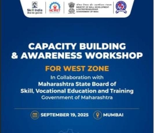 National Council for Vocational Education and Training (NCVET), Ministry of Skill Development & Entrepreneurship (MSDE), Government of India, in collaboration with Skill, Employment, Entrepreneurship and Innovation Department(SEEID), Government of Maharashtra, is organizing a Capacity Building and Awareness Workshop for Western Zone on 19th September 2025 at the Sahyadri State Guest House, Walkeshwar, Malabar Hill, Mumbai.