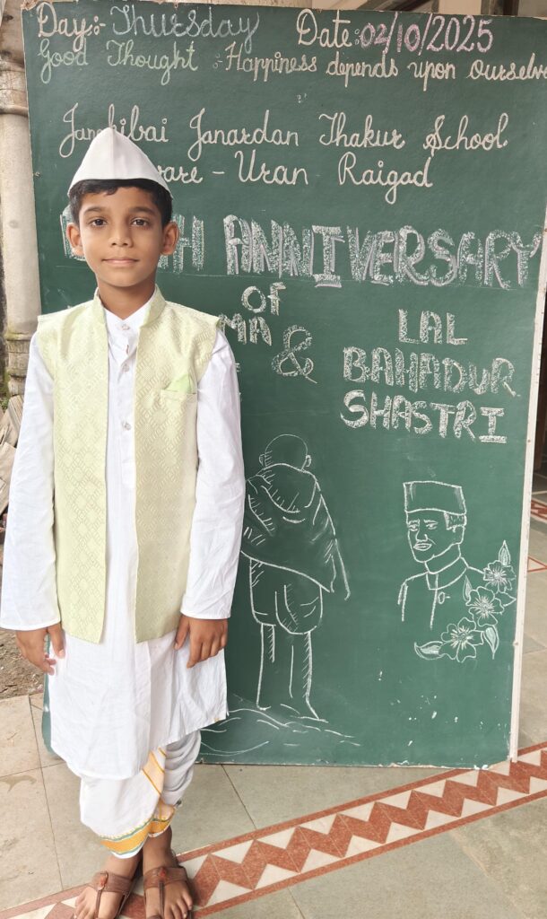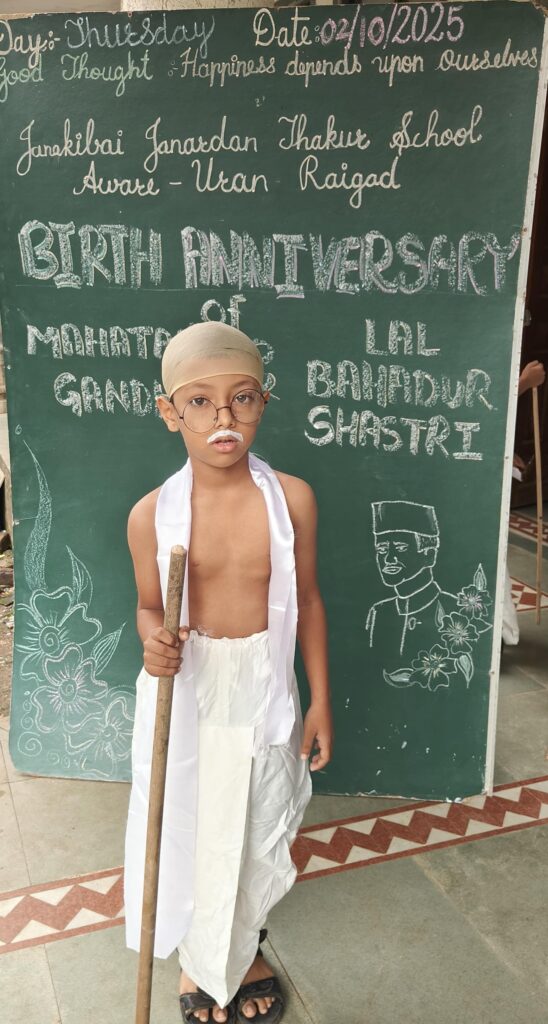 राष्ट्रपिता महात्मा गांधी आणि या देशाचे प्रथम पंतप्रधान लालबहादूर शास्त्री जयंती या दोहो थोर स्वातंत्र्य पुरुष यांची जयंती ही जानकीबाई जनार्दन ठाकूर स्कूल मध्ये मोठ्या उत्साहात पार पाडली.
