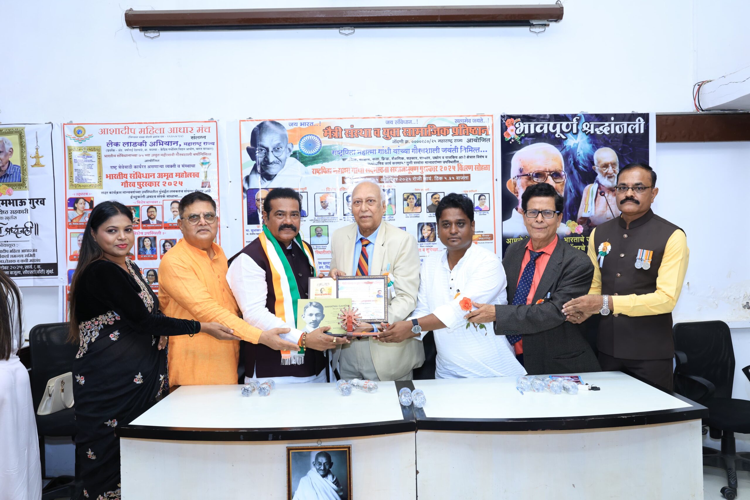 मैत्री संस्था आणि युवा सामाजिक प्रतिष्ठान यांच्यातर्फे ‘राष्ट्रपिता महात्मा गांधी सदभावना समाजभूषण’ पुरस्काराचे आयोजन करण्यात आले होते. पत्रकार सूरज भोईर यांनी आणि त्यांच्या संस्थेच्या पदाधिकाऱ्यांनी कार्यक्रम यशस्वी करण्यासाठी परिश्रम घेतले.