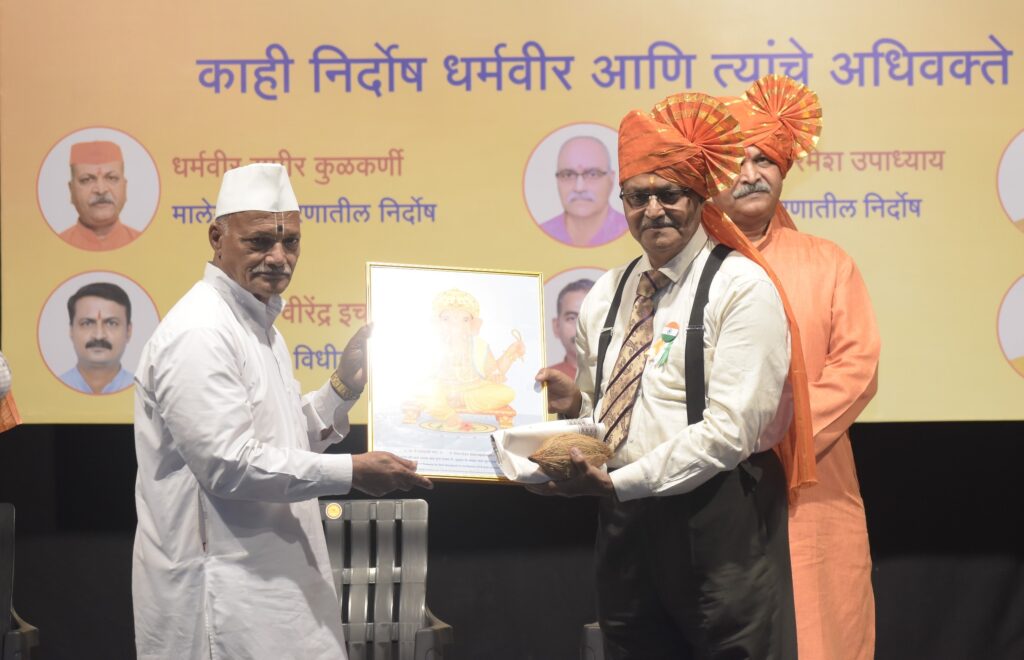 हिंदु जनजागृती समितीच्या वतीने कोल्हापूर येथील ‘देवल क्लब’मध्ये आयोजित ‘मालेगाव स्फोटात निर्दोष ठरलेल्या धर्मयोद्ध्यांच्या आणि त्यांच्या अधिवक्त्यांच्या सत्कार’ समारंभात ते बोलत होते. या कार्यक्रमासाठी ८०० हून अधिक हिंदू उपस्थित होते. कार्यक्रमात धर्मवीर समीर कुलकर्णी आणि मेजर रमेश उपाध्याय यांचा विशेष सत्कार करण्यात आला. तसेच हिंदु विधीज्ञ परिषदेचे अध्यक्ष अधिवक्ता वीरेंद्र इचलकरंजीकर, अधिवक्ता समीर पटवर्धन, अधिवक्ता प्रीती पाटील आणि हिंदुत्वनिष्ठ लेखक श्री. विक्रम भावे यांचाही सन्मान करण्यात आला. कार्यक्रमाच्या प्रारंभी सत्कारमूर्तींची वाहनातून सभास्थळापर्यंत वाजत-गाजत मिरवणूक काढण्यात आली.