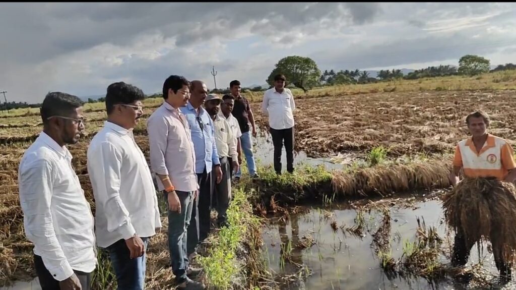 तालुक्यातील वाशी, वढाव, सरेभाग, भाल विठ्ठलवाडी यासह संपूर्ण तालुक्यात परतीच्या पावसामुळे हजारों हेक्टर भातशेती उध्वस्त झाली असून यामुळे शेतकरी पुर्णता हवालदिल होऊन चिंताग्रस्त झाला आहे त्यामुळे त्याला सावरण्याची जबाबदारी शासनाची असल्याने दररोज पडत असलेल्या पावसामुळे शासनाने नुसते नुकसानग्रस्त शेतीचे पंचनामे न करता पेण तालुक्यात ओला दुष्काळ जाहीर करून शेतकऱ्यांना सरसकट मदत जाहीर करावी अशी मागणी शिवसेना ठाकरे गटाचे तालुकाप्रमुख समीर म्हात्रे यांनी केली आहे.