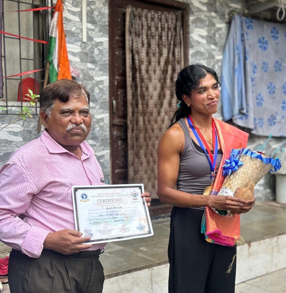 अनुष्का मोरे हिने वुमेन्स फिट मॉडेल ओपन या कॅटेगरीत मिळवलेल्या सुवर्ण पदकाच्या चमकदार कामगिरी बद्दल नगरसेवक बबन मुकादम युथ क्लब कळंबोली यांनी दखल घेऊन त्यांनी अनुष्का चा सत्कार करून तिला शुभेच्छा दिल्या.