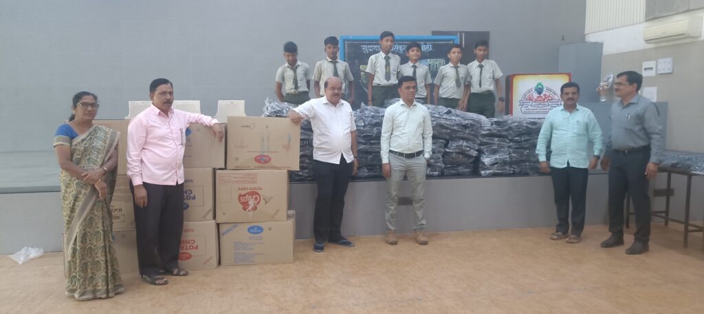नुकत्याच परतीच्या मान्सन पाऊसाने महाराष्ट्रातील घाटमाथ्यावरील अनेक जिल्हांना झोडपून काढून पूरग्रस्त वातावरण निर्माण केले होते. अशातच या पाऊसाने बीड जिल्ह्यातील अनेक शाळांमध्ये व विद्यार्थ्यांच्या घरांमध्ये पाणी शिरून विद्यार्थ्यांचे शैक्षणिक साहित्यांचे नुकसान झाले होते. याची जाणीव ठेवून सुधागड एज्युकेशन सोसायटीच्या कळंबोली येथील माध्यमिक व उच्च माध्यमिक विद्यालयाचे प्राचार्य राजेंद्र पालवे यांनी शाळेतील विद्यार्थी व शिक्षक-शिक्षेत्तर कर्मचारी यांना शैक्षणिक साहित्य जमा करण्याच्या आवाहन केले होते. त्या प्रमाणे विद्यार्थी व शिक्षक-शिक्षेकेत्तर कर्मचारी यांनी शैक्षणिक साहित्य जमा केले होते. ते शैक्षणिक साहित्य बीड चे जिल्हाधिकारी विवेक जाॅनसन यांच्या कडे नुकतेच सुपुर्द केले.