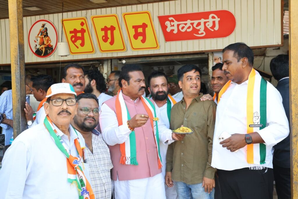 महेंद्र घरत यांनी भेल पुरीचा आस्वाद घेत मतदारांशी साधला संवाद