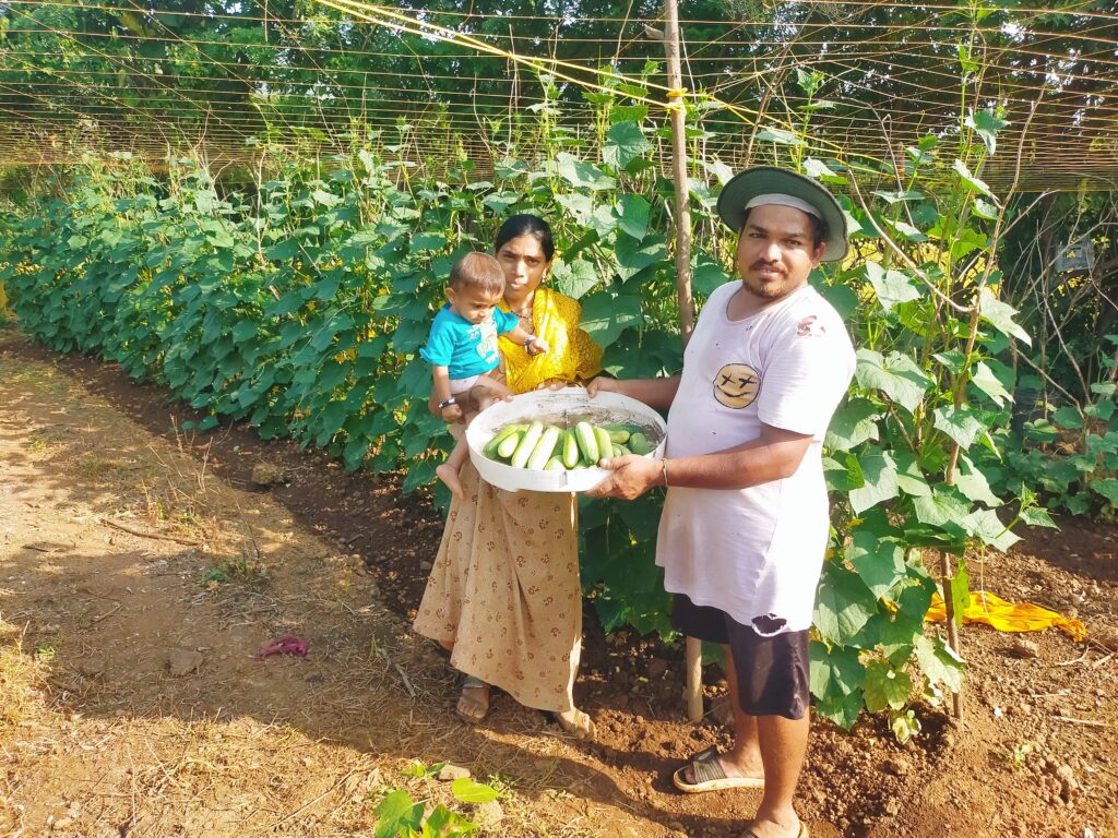 या हंगामात त्यांनी काकडी, कारले आणि चौळीची लागवड करून ५७ हजार ५०० इतकेआतापर्यंतचे सर्वाधिक हंगामी उत्पन्न मिळवले. पहिल्यांदाच आमच्या मुलाच्या भविष्याबद्दल सुरक्षित वाटत आहे, असेचंद्रा सांगतात. आमच्या नातवांनाही आता पुढे शिकायची स्वप्ने दिसू लागली आहेत,” असे गाढेश्वर येथील महादी आणि दत्तू दुमणे सांगतात. २.५ एकरशेती असलेल्या या दांपत्याला वाडी प्रकल्पांतर्गत सहाय्य मिळाले. सुधारित पद्धतींमुळे त्यांनी काकडी आणि चौळीचे उत्पादन घेऊन २३ हजार २० रुपये मिळवले, तसेच आंबा विक्रीतूनअतिरिक्त ५५ हजार ९०० रुपये उत्पन्नमिळाले. “पूर्वी आम्ही मजुरीवर अवलंबून होतो; आता आमची शेतीच आमची सोय करते, असे दत्तू सांगतात.