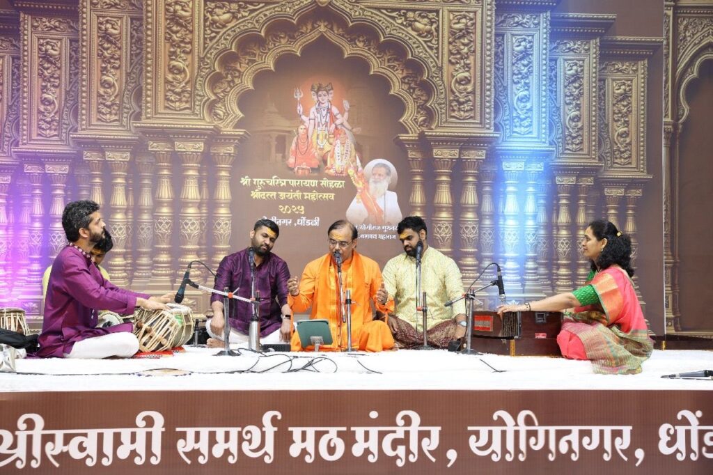 पं. उमेश चौधरी यांच्या सुमधुर गायनाला अक्षय चौधरी आणि मंगेश चौधरी यांनी संगीत साथ दिली. तबल्यावर सुप्रसिद्ध तबलावादक प्रसाद पाध्ये, पखवाजावर ऍड. सूरज गोंधळी, हार्मोनियमवर सुप्रिया जोशी तर टाळ वाद्यावर गुरुदास कदम या अनुभवी कलाकारांची उत्तम साथ लाभली. सूत्रसंचालन व निवेदनाची जबाबदारी सोपान आडव यांनी प्रभावीपणे पार पाडली. पं. उमेश चौधरी यांनी गायनाची सुरुवात जयजयंवती रागातील बडा खयाल ‘ए माई ऐसे समेमे’ ने केली. त्यानंतर त्याच रागातील ‘मोरे मंदर अजहूनही आये’ हा छोटा खयाल सादर केला. पुढे ‘श्रीरामचंद्र कृपाळू भजु मन’ ही गोस्वामी तुलसीदासांनी रचलेली प्रसिद्ध रामस्तुती अभंगवाणी सादर केली. यानंतर ‘चंदनाची परिमळ’, ‘याहूनी मागणे काय दत्ता’, ‘नाचतो तव भजनी’, ‘हरी म्हणा तुम्ही गोविंद म्हणा’ हे अभंग सादर झाले आणि ‘स्वामी कृपा कधी करणार’ या भैरवी रचनेने कार्यक्रमाची सांगता झाली.