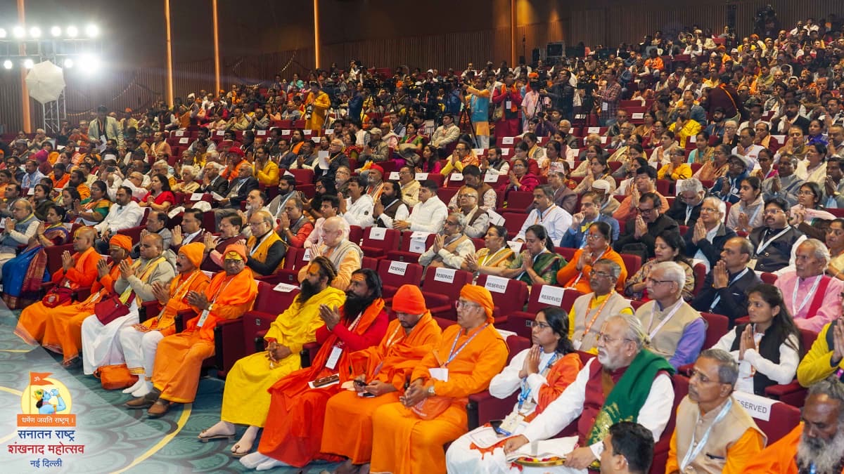 नवी दिल्ली - देशाच्या राजधानीतील भारत मंडपम् येथे पार पडलेल्या दोन दिवसीय ‘सनातन राष्ट्र शंखनाद महोत्सवा’ला देशभरातून ३ हजारांहून अधिक हिंदू, तसेच ८०० हून अधिक संघटनांचे पदाधिकारी उपस्थित होते. या वेळी समस्त संत-महंत, मान्यवर, मंत्री, उद्योजक, अधिवक्ता, विचारवंत, संरक्षणतज्ञ आदींनी सनातन राष्ट्र स्थापन्यासाठी संस्कृती रक्षणाचा निर्धार व्यक्त केला, तर ‘सुरक्षा, संस्कृति आणि शौर्य’ या विषयांवरील उद्बोधन, तसेच शस्त्रप्रदर्शन यांमुळे सर्वांमध्ये शौर्याची प्रेरणा निर्माण झाली.