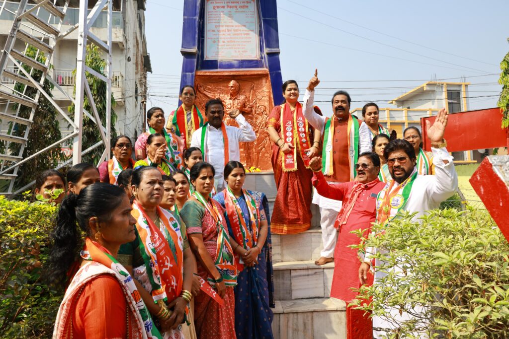 जासई येथे हुतात्म्यांना आणि लोकनेते दि. बा. पाटील यांना आंतरराष्ट्रीय कामगार नेते, कॉंग्रेसचे रायगड जिल्हाध्यक्ष महेंद्रशेठ घरत आणि महाविकास आघाडीच्या उमेदवारांनी मंगळवारी सकाळी अभिवादन केले. त्यानंतरच उमेदवारी अर्ज दाखल करण्यासाठी प्रयान केले.