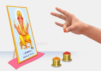 श्री गणेशाला अनामिकेने गंध लावावे. श्री गणेशाच्या आज्ञा चक्राच्या स्पर्शाने आपल्या मनातील खळबळ स्थिरावली असून आपले मन शांत झाले आहे असा भाव ठेवावा. तसेच अंगठा व अनामिका यांच्या चिमटीत प्रथम हळद आणि नंतर कुंकू घेऊन श्री गणेशाच्या चरणावर अर्पण करावे. या मुद्रेमुळे पूजकात भक्तिभाव जागृत होतो.