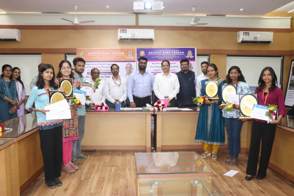 नवीन पनवेल : जनार्दन भगत शिक्षण प्रसारक संस्थेचे चांगू काना ठाकूर आर्ट्स, कॉमर्स अँड सायन्स कॉलेज, न्यू पनवेल (अधिकारप्रदत्त स्वायत्त) च्या इंग्रजी विभागातर्फे संस्थेचे मार्गदर्शक व प्रेरणास्थान माजी खासदार मा. श्री. रामशेठ ठाकूर साहेब यांच्या ७५व्या अमृतमहोत्सवीवर्षानिमित्त दोन दिवसीय आंतरमहाविद्यालयीन निबंध लेखन व वक्तृत्व स्पर्धांचे आयोजन उत्साहात करण्यात आले.