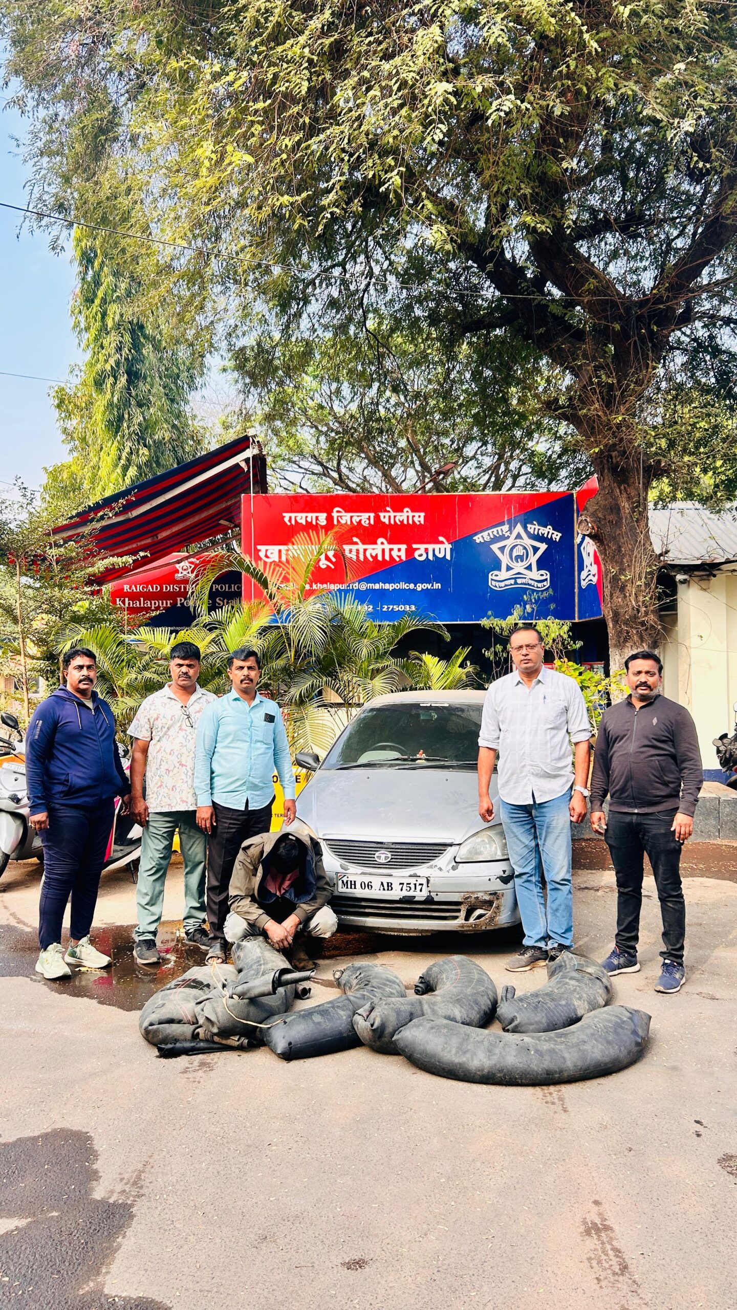 या कारवाईत ट्यूबमध्ये भरलेली २४,०००/-रुपये किमतीची २४० लिटर गावठी हातभट्टीची तयार दारू तसेच ९५,०००/-किमतीचे वाहन क्रमांक MH 06 AB.7517 टाटा कंपनीची इंडिका डीलक्स वाहन असे एकूण१,१९,०००/रुपये किमतीचा असा संपूर्ण मुद्देमाल जप्त करण्यात आला असून आरोपी दिनेश नारायण नरे (वय५२) राहणार वरने तालुका कर्जत जिल्हा रायगड यास ताब्यात घेऊन खालापूर पोलीस ठाण्यात गुन्हा रजिस्टर नंबर 60/2026 महाराष्ट्र दारूबंदी अधि नियम 1949 चे कलम (65) प्रमाणे गुन्हा दाखल करण्यात आला असून यापुढील अधिक तपास खालापूर पोलीस करीत आहेत.