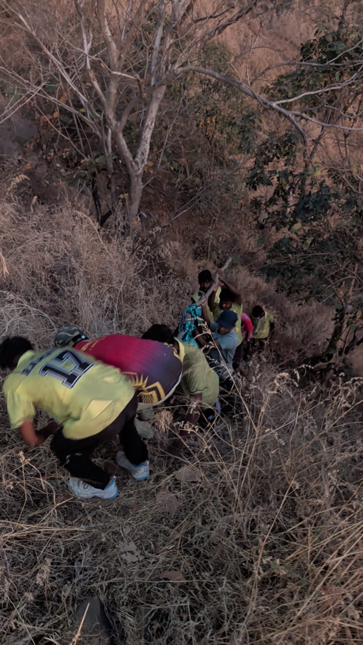 त्यावर लागलीच वरील पथक व गावातील काही युवक यांना सोबत घेऊन सदर महिलेचा शोध घेतला, सदर महिला ही जखमी अवस्थेत दिसून आल्याने व तिची हालचाल होत नसल्याकारणाने लागलीच एका साडी मध्ये तिला गुंडाळून खांद्यावर घेऊन तिला लवकरात लवकर उपचार देण्याकरिता लागलीच गड उतरून रुग्णवाहिका बोलावून तिला सरकारी रुग्णालय येथे आणण्यात आले. सदर ठिकाणी वैद्यकीय अधिकारी यांनी दिला तपासले असता तिला मृत घोषित केलेले होते सदर महिलेबाबत माहिती प्राप्त केले असता तिचे नाव प्रीती सिंग राहणार सेक्टर 12र कोपरखैरणे नवी मुंबई असे असून घरगुती कारणामुळे तिने रागाच्या भरात आत्महत्या केल्याचे तपासात निष्पन्न झालेले आहे. झाल्या घटना वरून पनवेल तालुका पोलीस स्टेशन येथे अकस्मात मृत्यू रजिस्टर दाखल करण्यात आलेला आहे.
