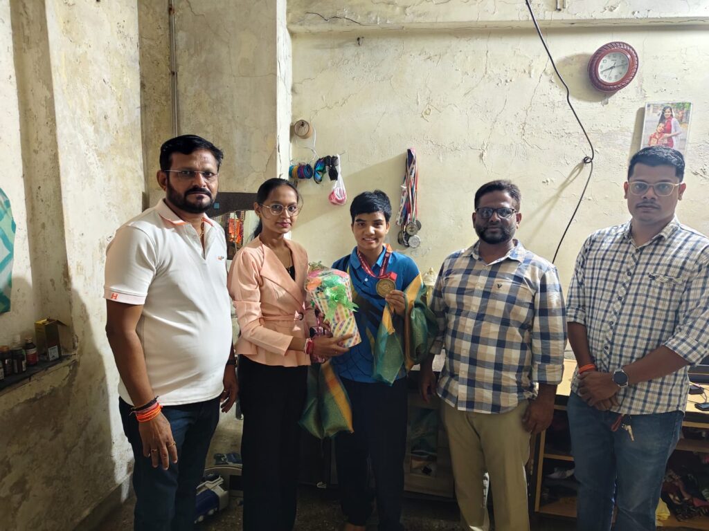 पनवेल दि.२७(वार्ताहर): पनवेल मधील दुर्पता तारासिंह साउद ऊर्फ छोटी हिने बंगळूरू येथे पार पडलेल्या ६९ राष्ट्रीय बॉक्सिंग शालेय स्पर्धेमध्ये उत्कृष्ट खेळाचे प्रदर्शन करून सुवर्णपदक मिळवून महाराष्ट्र आणि पनवेलचा मान वाढवला. याबद्दल पनवेल महानगरपालिकेतील महाविकास आघाडीच्या नगरसेविका आर्या प्रविण जाधव, नगरसेवक लतीफ शेख, शिवसेना(उद्धव बाळासाहेब ठाकरे) पक्षाचे शहर प्रमुख प्रविण जाधव. विभाग प्रमुख जुनैद पवार शाखा प्रमुख मयुरेश पाटील यांनी धुर्पता तारसिन्ह साऊद हिच्या घरी जाऊन सत्कार केला तसेच तिला पुढील वाटचालीस शहर शाखेतर्फे मदत करण्यात येईल असे आश्वासन देण्यात आले.