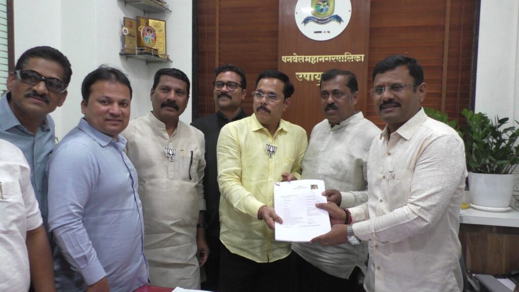 नुकताच झालेल्या पनवेल महानगरपालिका सार्वत्रिक निवडणूकीमध्ये पुन्हा एकदा भाजप महायुतीने वर्चस्व सिद्ध केले. या निवडणुकीत भाजपने ५५, शिवसेनेने २ आणि राष्ट्रवादी काँग्रेसने २ जागांवर विजय मिळवत एकूण ५९ जागांसह पनवेल महानगरपालिकेवर पुन्हा एकदा भाजप महायुतीची भक्कम सत्ता प्रस्थापित केली. त्या अनुषंगाने महापौरपदी नितीन पाटील तर उपमहापौरपदी प्रमिला पाटील विराजमान झाले. ५९ जागांवर विजय मिळाल्यामुळे सातपैकी पाच स्वीकृत नगरसेवक पदे महायुतीच्या वाट्याला आली आहेत. त्यामध्ये सभागृहाचा अनुभव व अभ्यास असलेले परेश ठाकूर, गणेश कडू, डॉ. अरुणकुमार भगत, ॲड. प्रथमेश सोमण, आणि दिनेश खानावकर यांना स्वीकृत नगरसेवकपदाची संधी देण्यात आली आहे. त्यांनी आज आपले उमेदवारी अर्ज निवडणूक निर्णय अधिकाऱ्यांकडे दाखल केले. निर्वाचित ५९ आणि स्वीकृत पाच अशी एकूण ६४ संख्याबळ महायुतीची होणार आहे.