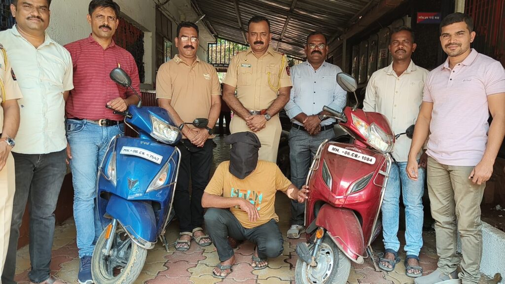 याबाबत माहिती अशी की पेण पोलीस ठाण्याच्या हद्दीतील भाजी मंडई येथील निधी ट्रेडर्स दुकाना समोर लावलेली एक लाल रंगाची होंडा कंपनीची ॲक्टीव्हा स्कुटी एम.एच.०६,सी.बी १०८४ हि बाईक सदर चोरट्याने दि. ९ मार्च २०२६ रोजी दुपारच्या सुमारास स्वतःच्या फायदया करीता चोरी करून नेली होती याबाबतची तक्रार फिर्यादी याने पोलीस ठाण्यात दिली असता पोलिसांनी आपली तपासाची सूत्रे हलवली आसता सदर आरोपी मोटरसायकल घेऊन नागोठणे बाजूकडे गेला असल्याचे सीसीटीव्ही फुटेज मध्ये दिसत आला असता आरोपी राजेंद्र नथुराम किळंजे उर्फ अबु यास दि.१३ मार्च रोजी अटक करण्यात आली.