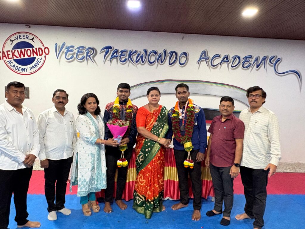 जालंधर (पंजाब) येथे पार पडलेल्या अखिल भारतीय आंतर विद्यापीठ तायक्वांदो चॅम्पियनशिपमध्ये पनवेलच्या खेळाडूंनी आपली मोहोर उमटवली आहे. ‘तायक्वांडो असोसिएशन ऑफ पनवेल शहर’चा खेळाडू कु. निहाल संजय भोईर याने पुरुषांच्या ८० किलो वजनी गटात अटीतटीच्या लढतीत कांस्य पदक पटकावले. याच स्पर्धेत श्रीजय हरेश्वर भगत याने उत्कृष्ट खेळाचे प्रदर्शन करत ‘टॉप ८’ मध्ये स्थान मिळवले आहे.
