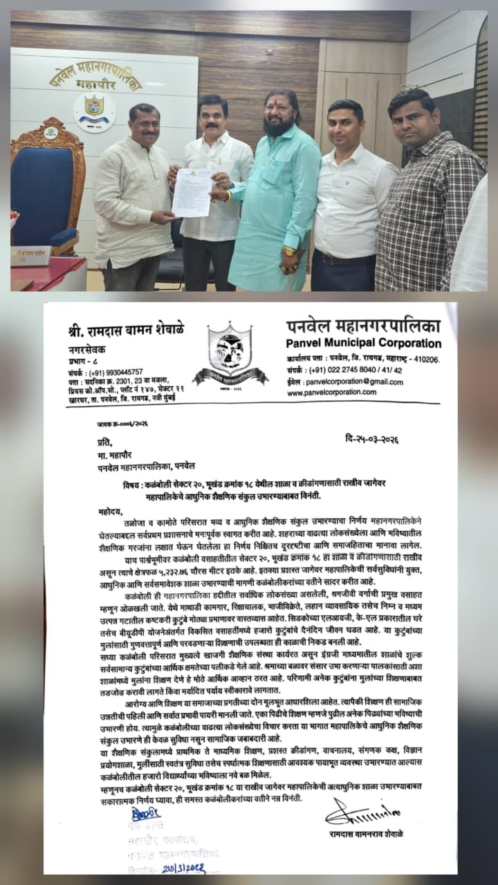 कळंबोलीत आधुनिक शैक्षणिक संकुल उभारा; नगरसेवक रामदास शेवाळे यांची महापौरांकडे मागणी