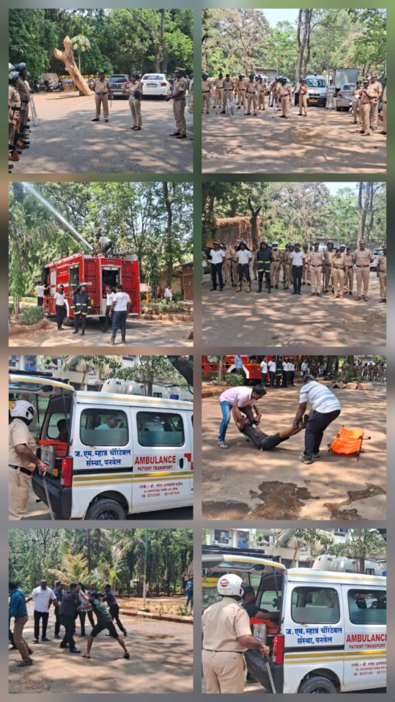 वपोनि स्मिता ढाकणे यांच्या मार्गदर्शनाखाली पोलीस ठाणे कडील 05 अधिकारी व 30 पोलीस अंमलदार लाठी काठी ,ढाल हत्यारासह, फायर ब्रिगेडचे एक अधिकारी पाच फायरमन, ॲम्बुलन्स स्टाफ सह एकत्रितपणे हद्दीमध्ये शिवशंकर मंदिर खांदा कॉलनी या ठिकाणी पालखी मिरवणुकीवरून दोन गटांमध्ये हाणामारी झाल्याच्या घटनेच्या अनुषंगाने दंगा काबू ड्रिल राबविण्यात आली.