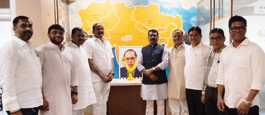 भारतीय राज्य घटनेचे शिल्पकार भारतरत्न डॉ. बाबासाहेब आंबेडकर यांच्या जयंतीनिमित्त भारतीय जनता पार्टी पनवेल तालुका व शहर मध्यवर्ती कार्यालयात अत्यंत उत्साहपूर्ण वातावरणात जयंती कार्यक्रम साजरा करण्यात आला.