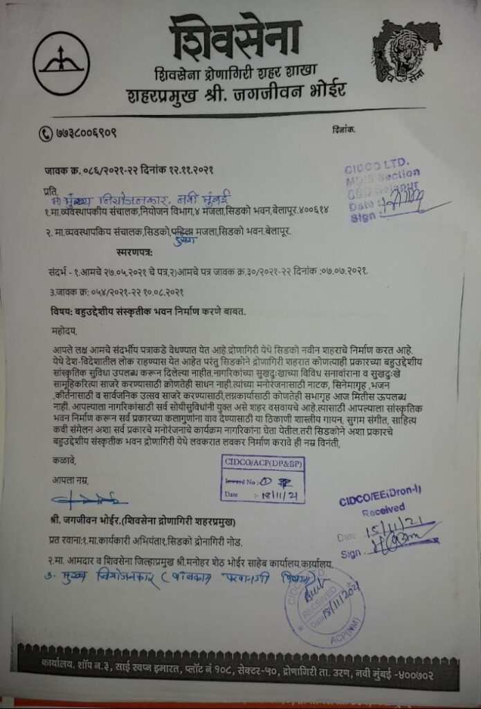 सिटी बेल | उरण | विठ्ठल ममताबादे | उरण तालुक्यातील द्रोणागिरी परिसराचा विकास जोमाने सुरु आहे. मात्र येथे बहूउद्देशीय सांस्कृतिक भवन नसल्याने जनतेची, नागरिकांची खूप…