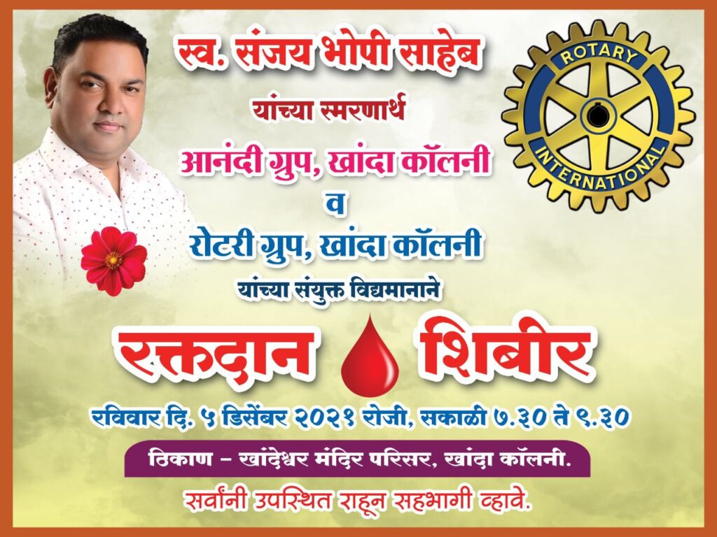 सिटी बेल| खांदा कॉलनी | स्व.संजय दिनकर भोपी यांच्या स्मरणार्थ खांदा कॉलनी मधील “आनंदी ग्रुप” आणि रोटरी ग्रुप यांच्या संयुक्त विद्यमाने रक्तदान शिबिराचे आयोजन करण्यात…