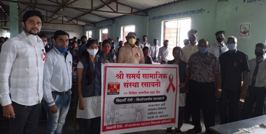 सिटी बेल | रसायनी | राकेश खराडे | 1 डिसेंबर जागतिक एड्स दिनानिमित्त श्री समर्थ सामाजिक संस्थेअंतर्गत कोरोना नियमांचे पालन करुन जनजागृती कार्यक्रम राबविण्यात आला.…
