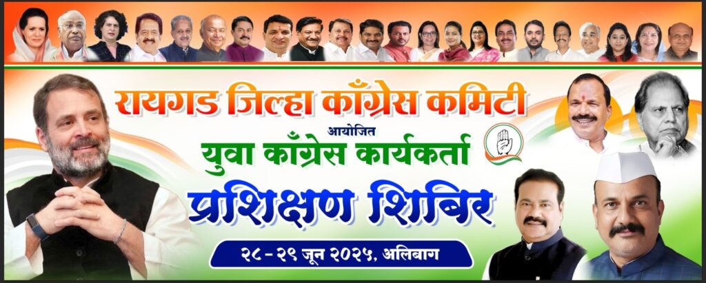 रायगड जिल्हा काँग्रेस कमिटीच्यावतीने युवकांमध्ये राजकीय जागरूकता,संघटनात्मक कौशल्य व संविधानिक मूल्यांची जाणीव निर्माण व्हावी या उद्देशाने युवा कार्यकर्ता निवासी प्रशिक्षण शिबिराचे आयोजन करण्यात आले आहे.…
