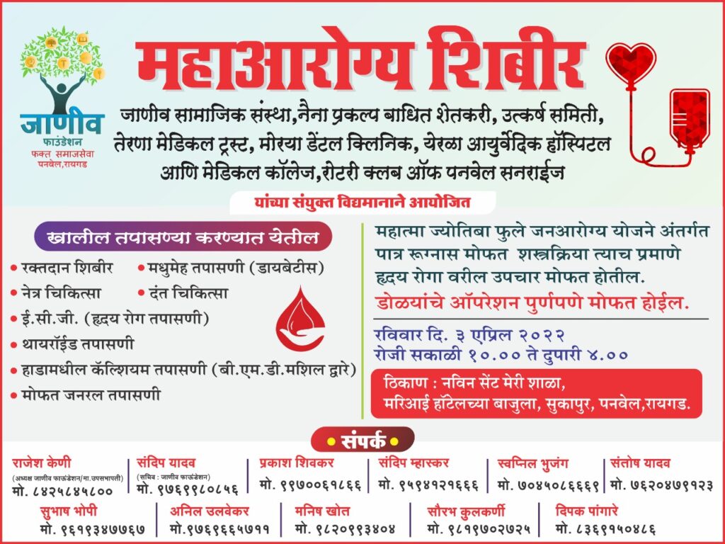 जाणीव सामाजिक संस्थेच्या वतीने महाआरोग्य शिबिराचे आयोजन सिटी बेल • सुकापूर • शेतकरी कामगार पक्षाचे पनवेल तालुका चिटणीस राजेश केणी यांच्या मार्गदर्शनाखाली कार्यरत असणाऱ्या जाणीव…