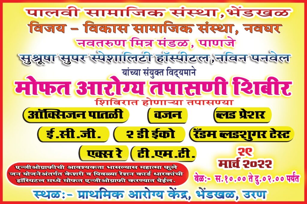 भेंडखळ येथे दिनांक 29 मार्च रोजी हार्ट अटॅक संबंधित सर्व चाचण्या मोफत सिटी बेल • उरण • विठ्ठल ममताबादे • हार्ट अटॅक आणि हार्ट संदर्भातील…