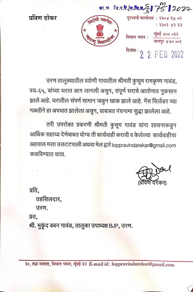 कुसुम गावंड यांना शासकीय मदत मिळावी यासाठी आमदार महेश बालदी यांचे प्रयत्न सिटी बेल • उरण • विठ्ठल ममताबादे • उरण तालुक्यातील वशेणी गावात 20…
